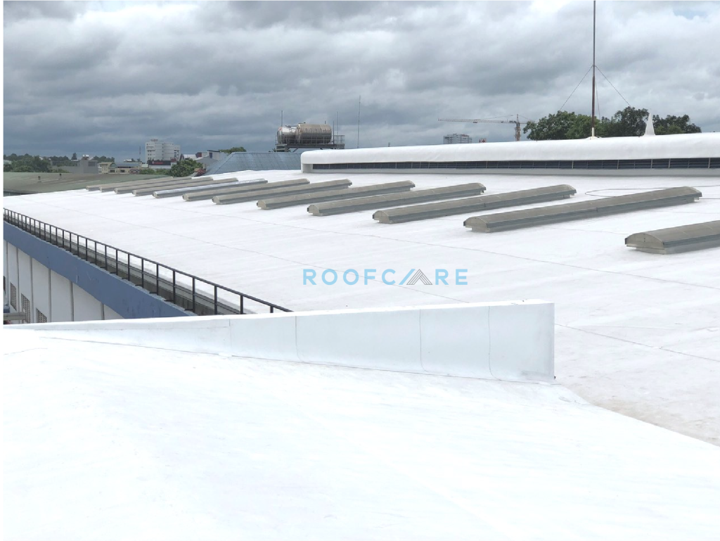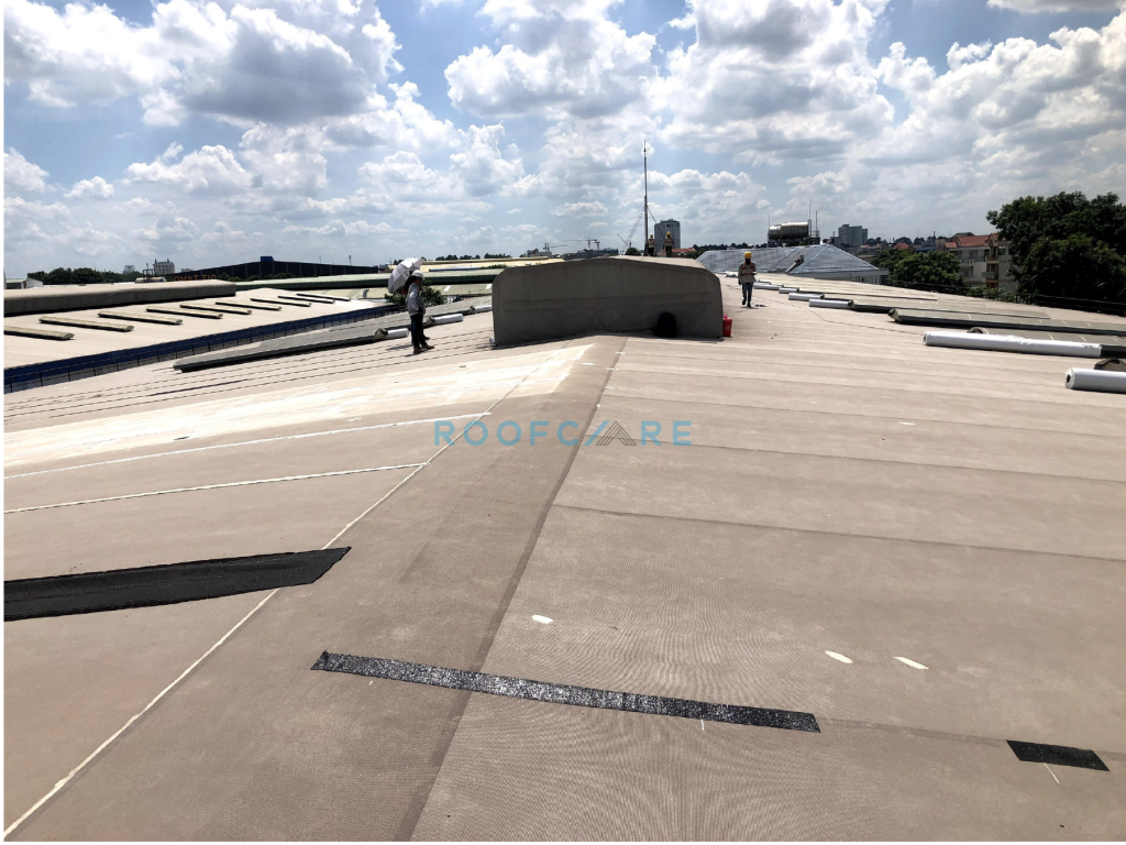 Roofcare’s solution is retrofitting UltraPly TPO membrane system for metal roof. The proposed solution is to keep the existing roof status. Attaching approved plates and fasteners into the purlins and spreading the TPO membrane above. After that, the membrane system will be welded on grid of TPO induction welding plate. As a result, the renovation does not affect the operation below while ensuring outstanding waterproofing and durability