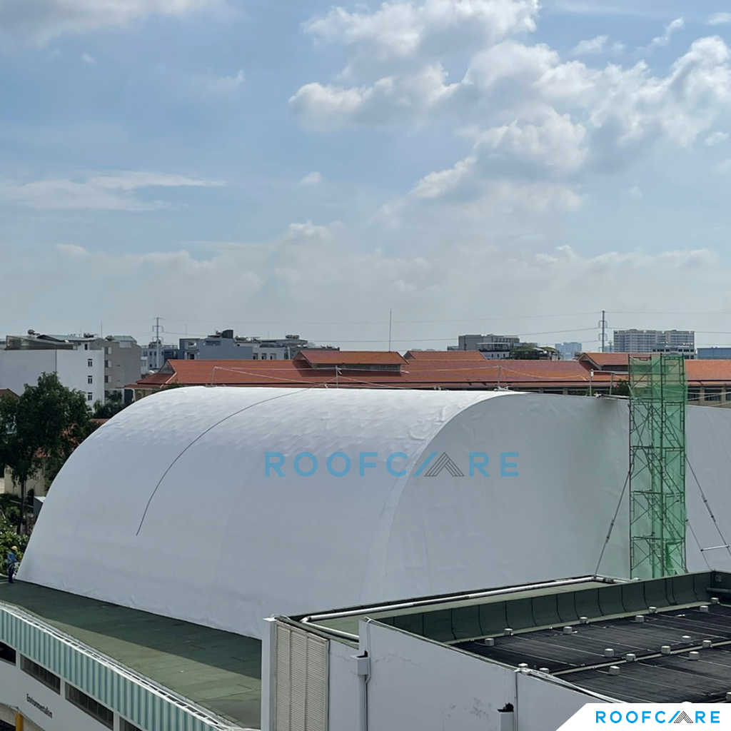 Hệ mái Roofcare TPO hoàn thiện đảm bảo kín nước kín khí, chống thấm vượt trội. Bên cạnh đó còn cách âm, cách nhiệt giúp tiết kiệm năng lượng cho nhà máy. Hệ thống được bảo hành 10 năm, độ bền hơn 20 năm